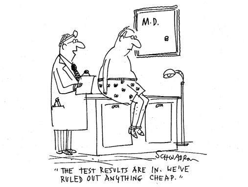 It's the composition -- the fact that are eyes are drawn to the little wiggle lines by the exposed toes -- that Bill Harrison's cartoon works.