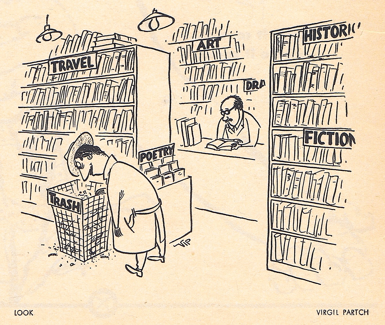 15. 1959. At the end of the decade Partch has perfected a style that is sharp and simple. No surprise--his gags continued to be the very best, as demonstrated by this classic. Look Magazine March 17, 1959