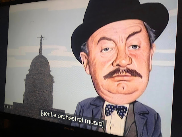 Below are a dozen of the same opening caricatures of Leo McKern from the Rumpole of the Bailey TV show. This is the subtitled version I stream on Amazon Prime. Odd thing: the closed caption description of the theme music changes from show to show, describing the signature tune as “jaunty theme music,” “whimsical music,” “whimsical melancholic,” “brooding,” “gentle, “upbeat,” and so on. The music never changes, but the captions sure are all over the place in describing it. I haven’t a clue as to why whoever is captioning this hasn’t locked down a standard description, but there it is.